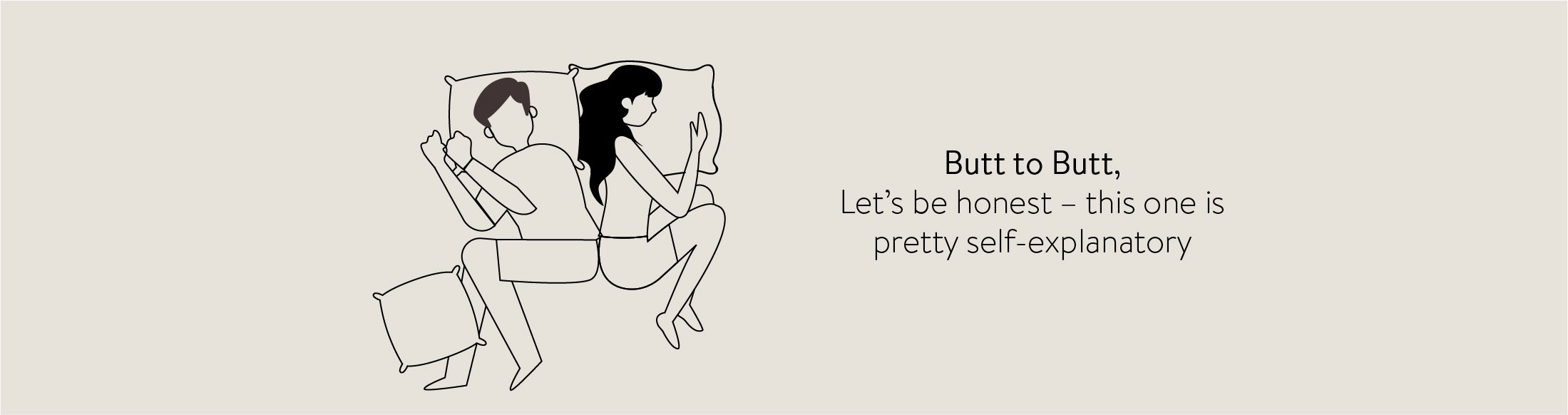Let’s be honest – this one is pretty self-explanatory. The Butt-to-Butt position involves sleeping back-to-back with your partner, while maintaining some contact on the lower half of the body. Usually, this will be parts of the lower back or butt.