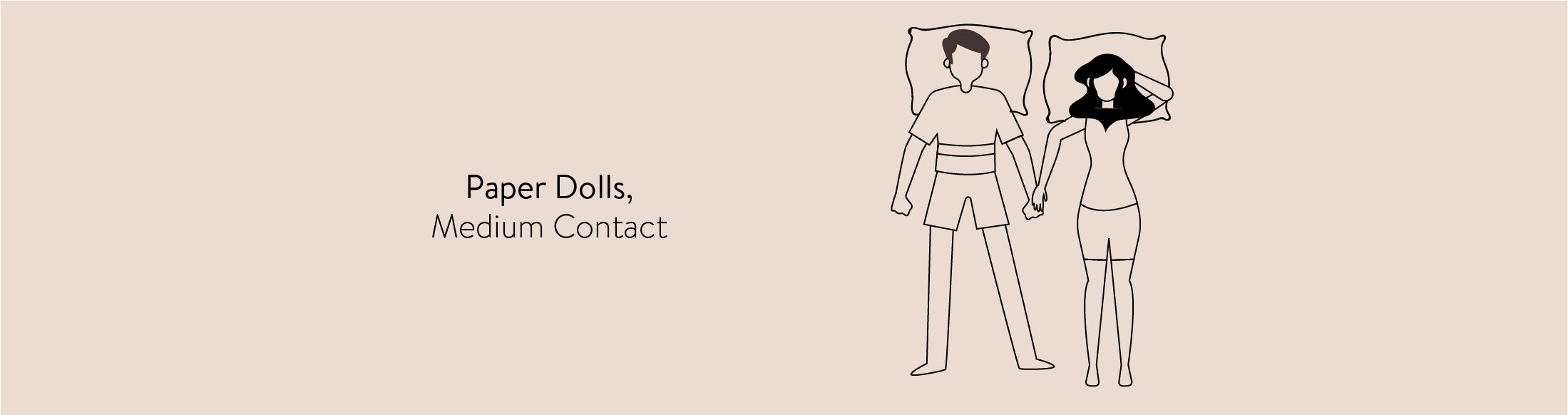 The Paper Dolls position involves both partners sleeping side by side, on their backs, and touching their fingers together (reminiscent of a row of paper dolls). This light contact can, again, be comforting and make partners feel safe and connected, without being overbearing.