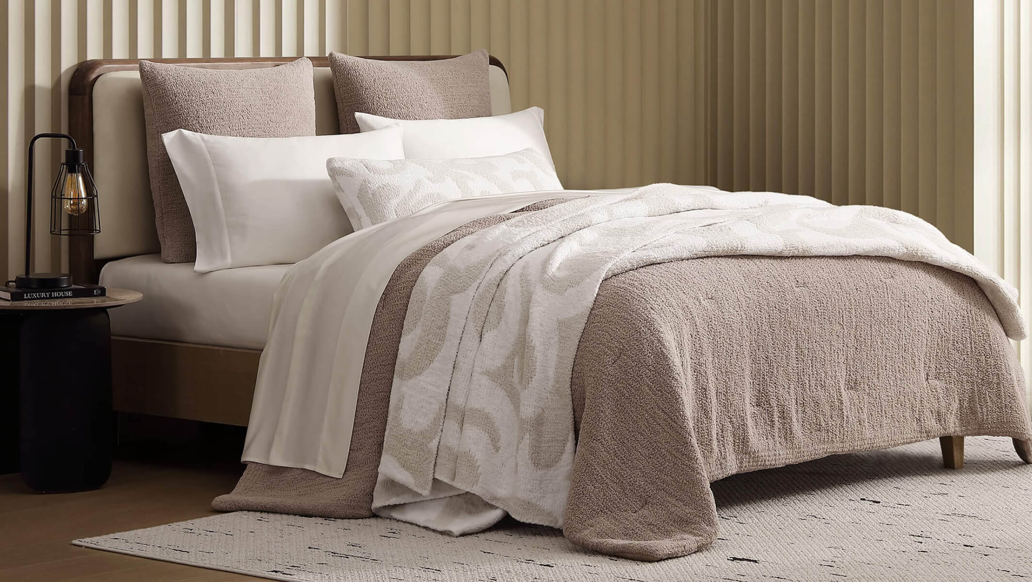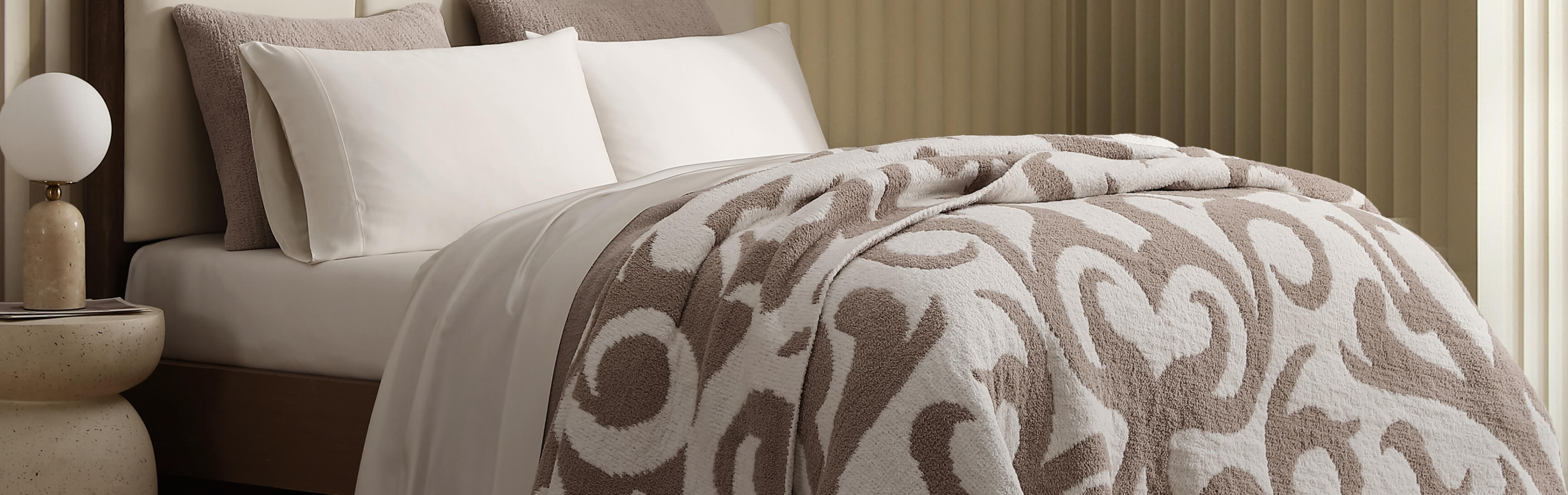 Timeless texture and a cloud soft feel. Dress your bed and sofa with the full Casablanca set: comforter, blanket, pillows, and throw.
