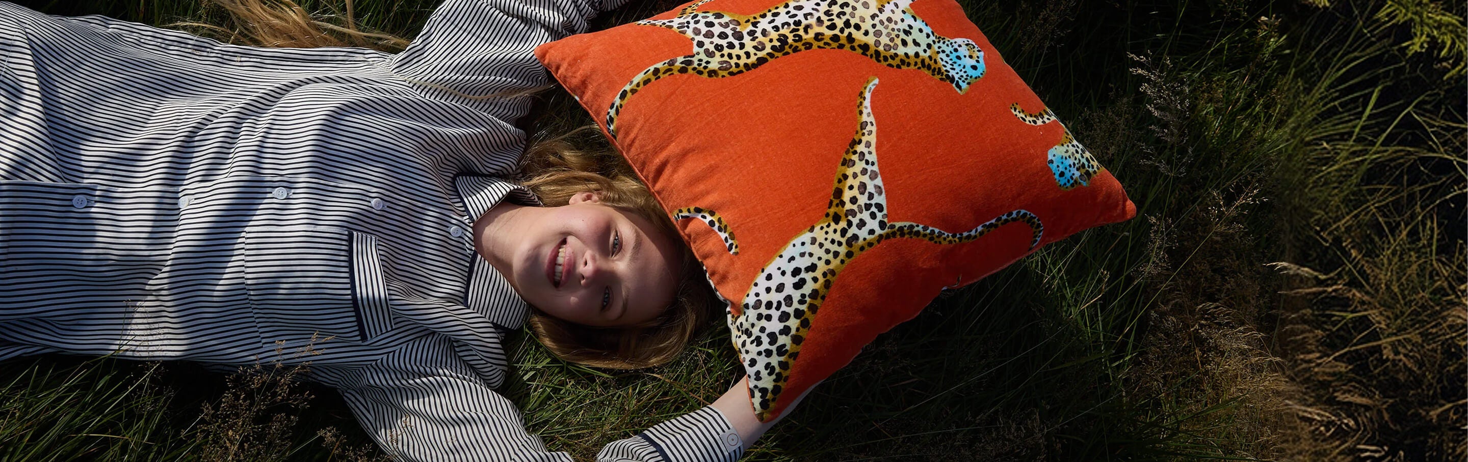 Image of Velvet Leaping Small Leopard Throw Pillow Secondary image of Velvet Leaping Small Leopard Throw Pillow