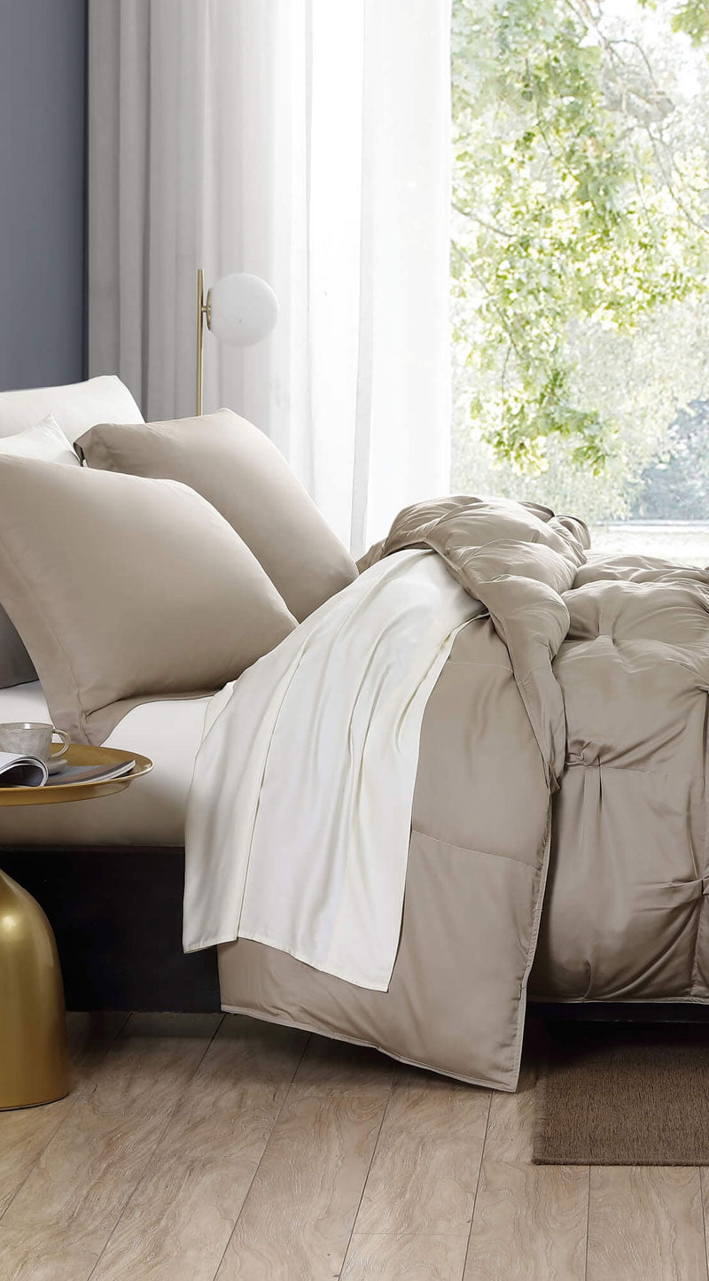Snuggle up in our silky-smooth, breathable Premium Bamboo Bubble Comforter. This neutral palette will bring you extra zen.