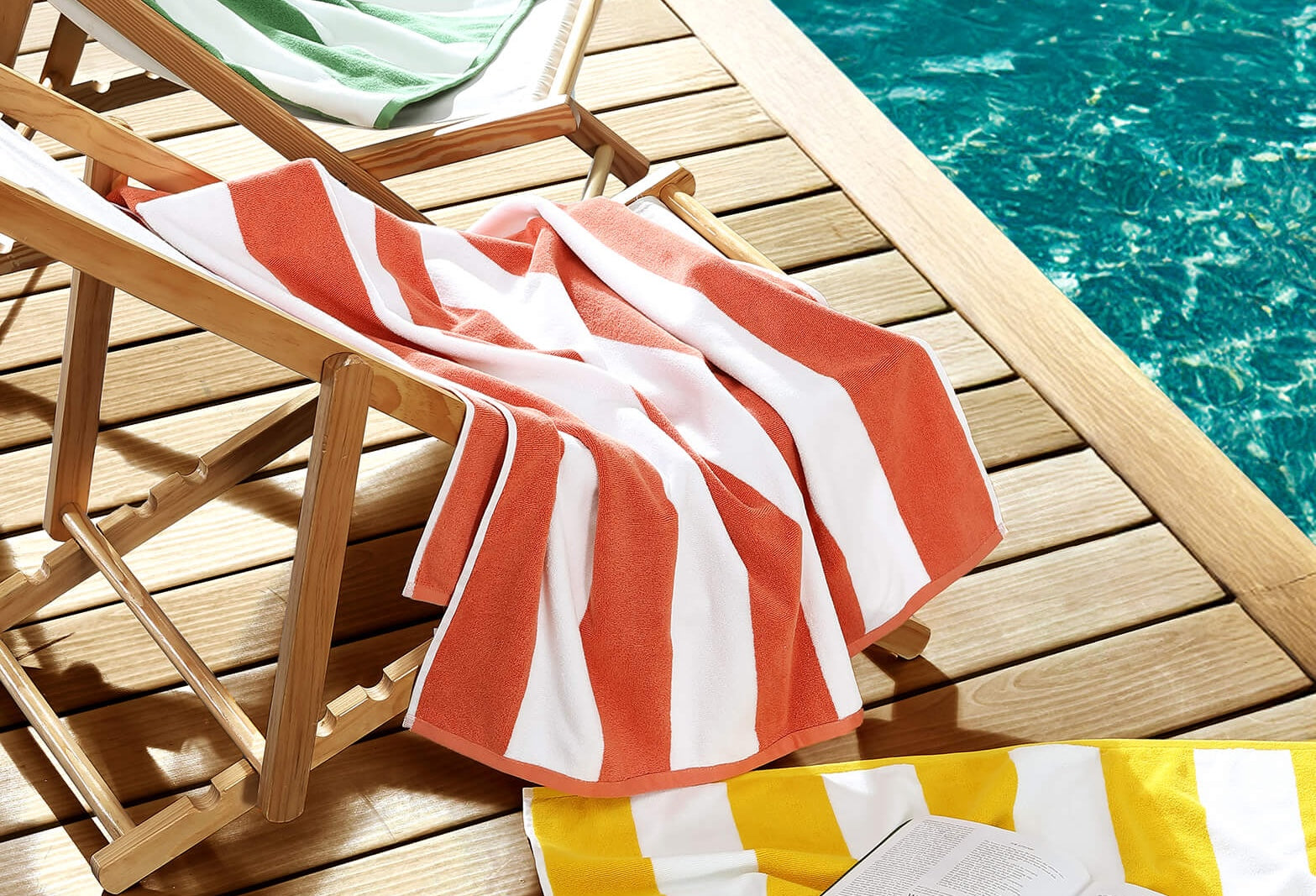 This deliciously soft, sand-repellent beach towel is your new oceanside staple. Absorbent and quick to dry, with a tight weave specially designed to repel sand and a classic stripe motif. Lay all day in the sun, then throw it in the laundry basket (no mess) when you get home.