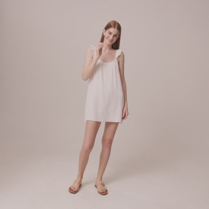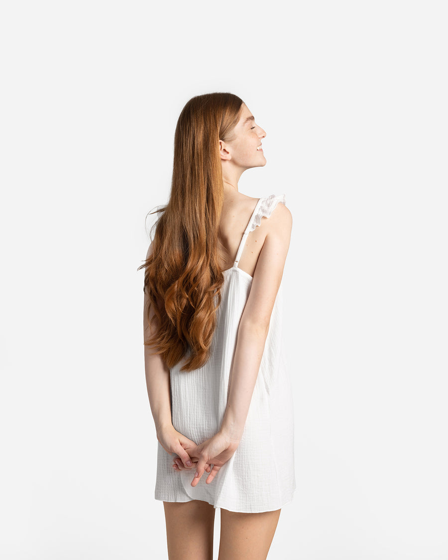 Light, effortless, and subtly romantic, this cotton muslin slip is designed for warm, easy mornings and soft summer nights. The airy silhouette drapes gently across the body for a flattering, feminine fit, while the delicate straps and lightweight feel make it your go-to for lounging or layering.