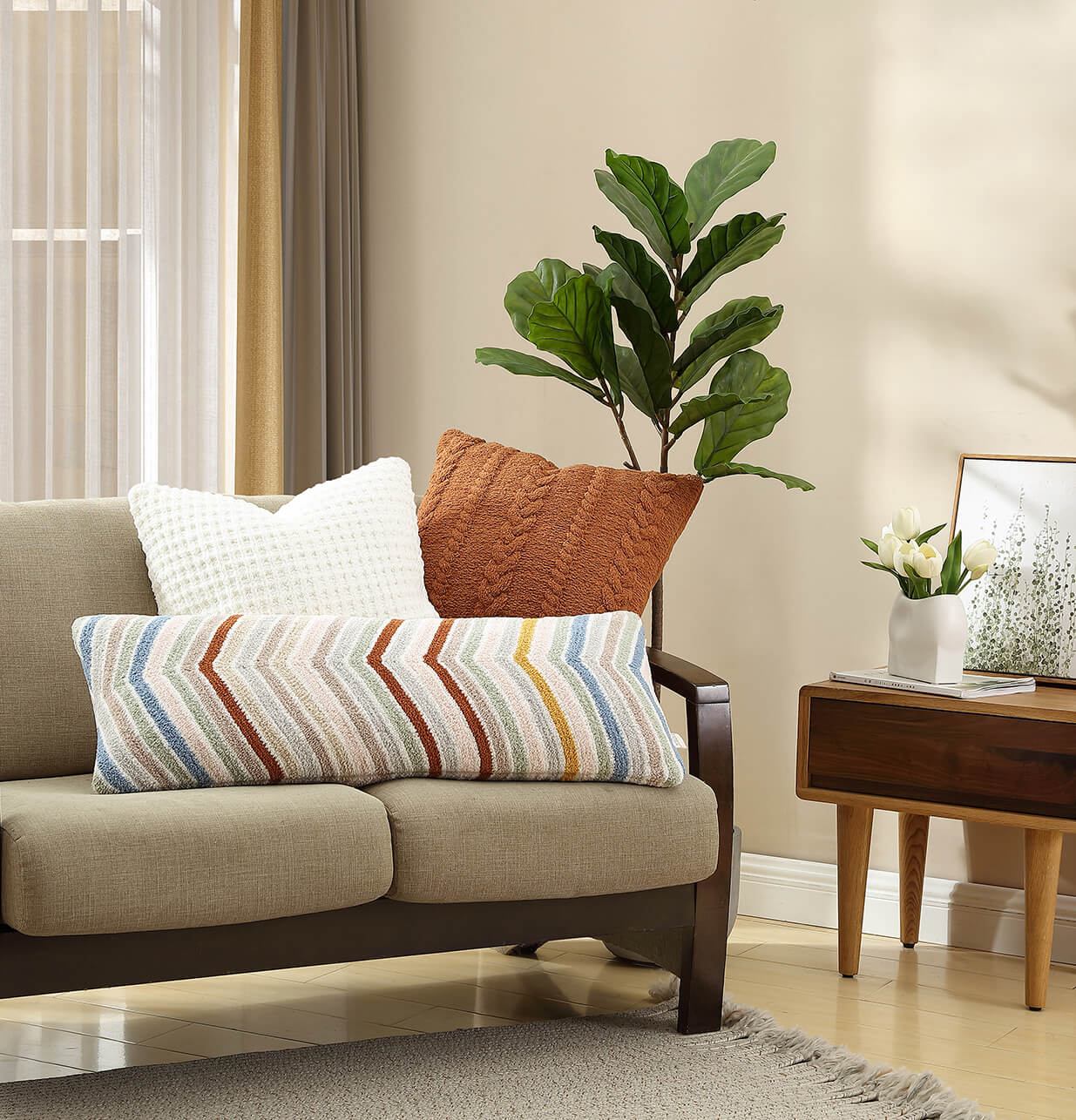 Waves of mineral hues make this soft, fluffy pillow the perfect complement to a neutral bedding palette. Use this Snug-covered, memory foam beauty to support your back while you watch your favorite movie on the sofa, or snuggle with it as you sleep.