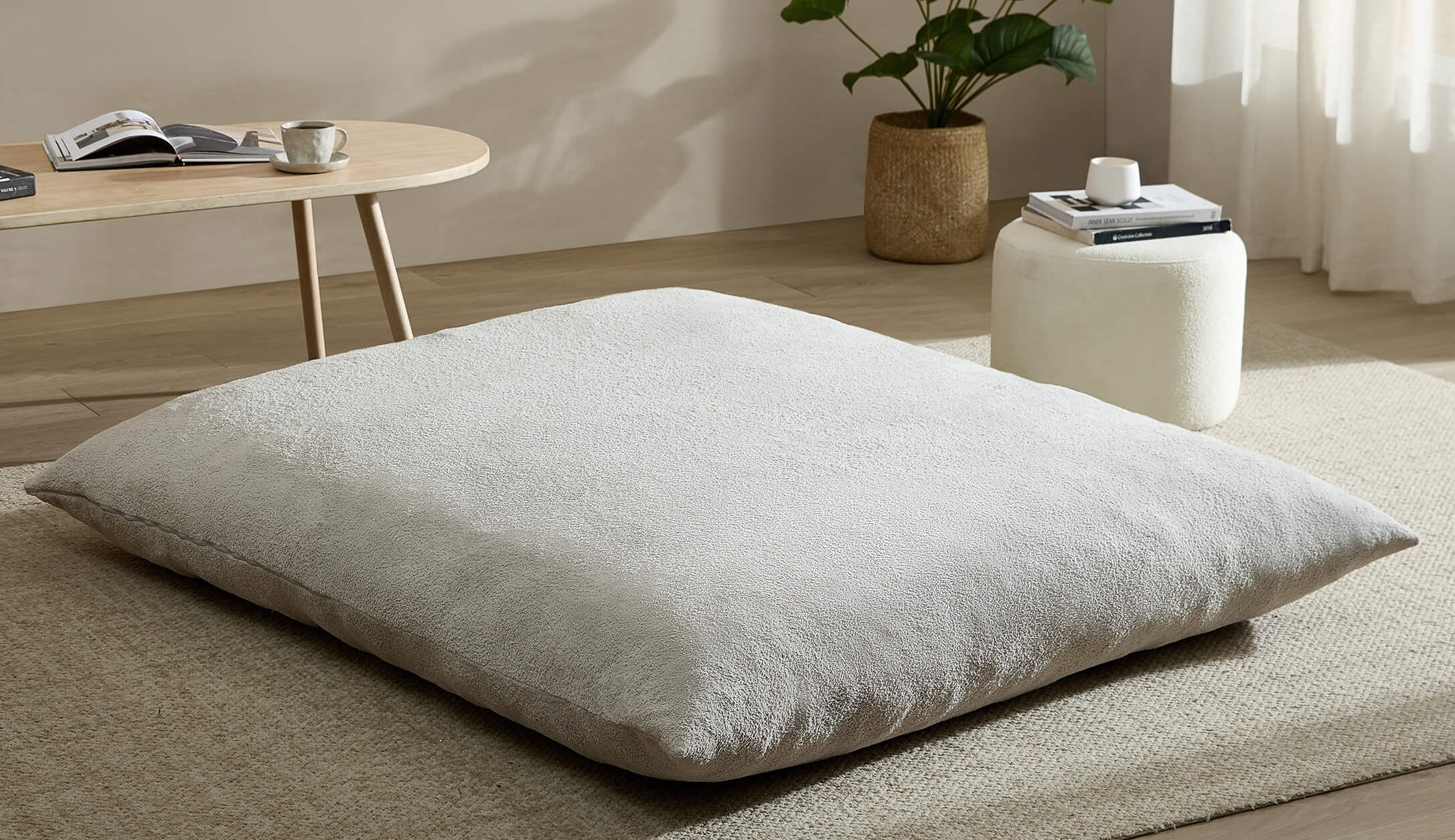 Sink into softness with our extra-large floor pillow, wrapped in ultra-plush Teddy fabric. Simply unbox, unwrap and watch it decompress. Whether you're lounging, meditating, reading, or relaxing with friends, this versatile favorite adds a cozy, contemporary touch to any space. Stylish yet effortless, it's a laid-back luxury your room will love.
