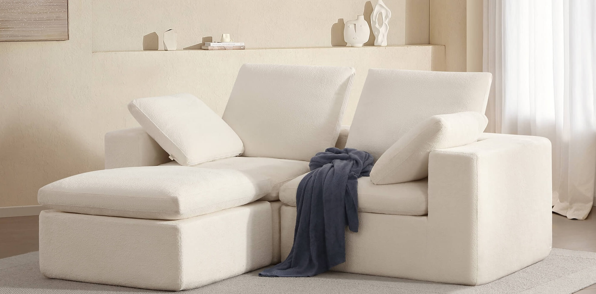 With a modern, elegant framework and minimalist design, the Hudson Modular Love Seat Sofa Set brings a relaxed sophistication to your living room. Upholstered in ultra-soft Teddy fabric with removable, memory foam cushions, Hudson’s plush comfort is unmatched. Its modular form also allows for customizable arrangements that adapt perfectly to your living space. Use the included Ottoman as a convenient foot rest, extra seat, or even a coffee table alternative (with a tray on top)!